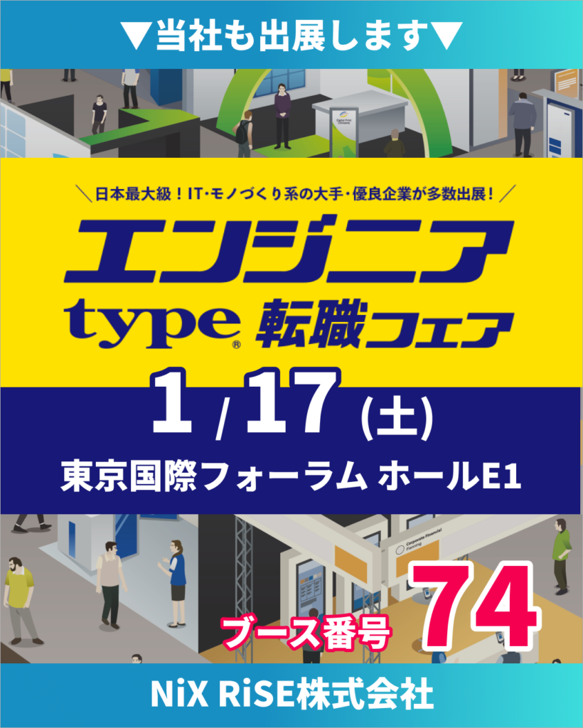 NiX RiSE株式会社(本社:東京都千代田区、以下 NiX RiSE)は、2026年1月17日(金)に東京国際フォーラムで開催される「typeエンジニア転職フェア」に出展いたします。